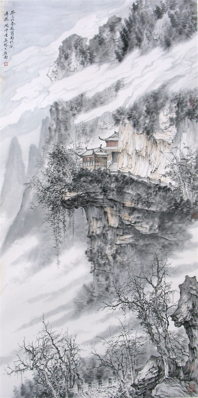 巨幅山水《武當(dāng)山煙雨》140*47cm