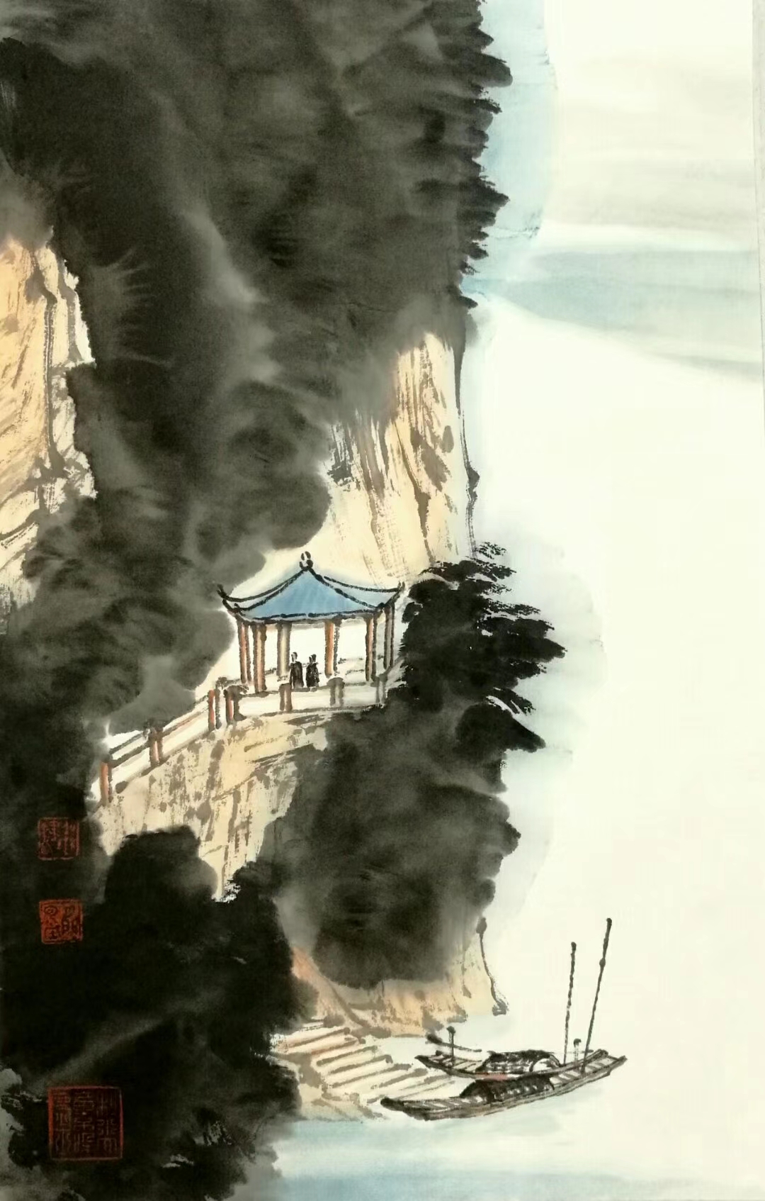 智者說,人生有三重境界:第一重,看山是山,看水是水;第二重,看山不是山,看水不是水;第三重,看山又是山,看水又是水。吳琳初以寫實(shí)為主,時(shí)常云游四方、畫稿盈笈,得意妙筆不絕如縷;繼而參以己意,畫風(fēng)微變,花鳥魚蟲在造境中盛開、飛翔、游嬉,精品力作吸 人眼眸;今番小山水,神來之筆頻頻,寫實(shí)乎?寫意乎?寫心也!或許,是吳琳的畫境暗合了人生三境吧。竊以為,寫實(shí)是一眼之境;寫意是一時(shí)之念;寫心乃一生之魂。或許,已過天命的吳琳兄,欲拋脫生活之牢籠,直抵生命的本真,心生禪意,境界便升至新的維度。如此,畫境安在?自然隨心,有心則為之,無心則諉之。老子言“無為而無不為”,蘇軾言“無意于佳乃佳”,想必隨心之境可助吳琳兄“一臂之力”,畫境、藝境自可更上層樓。