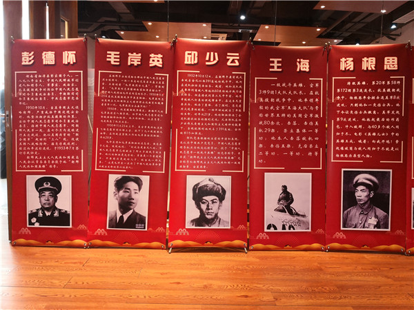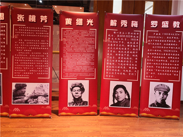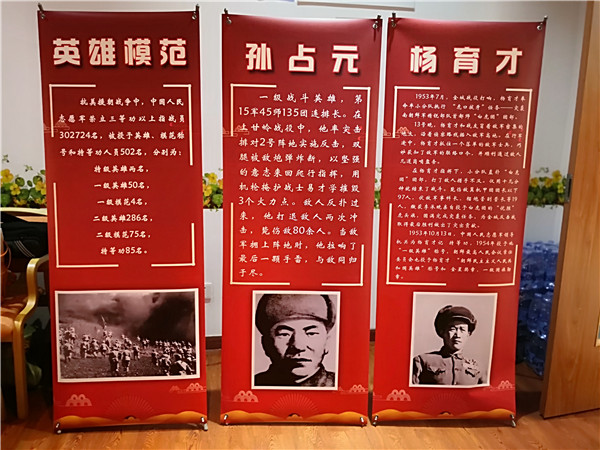 《抗美援朝十大英雄和著名戰(zhàn)役宣傳展》主要以展板形式陳列在活動現場四周,以便于到場的人學習參觀。據悉,在抗美援朝戰(zhàn)爭中,中國人民志愿軍榮立三等功以上指戰(zhàn)員有302724名,被授予英雄、模范稱號和特等功人員502名,其中:特級英雄兩名,一級英雄50名,一級模范4名,二級英雄286名,二級模范75名,特等功85名。本次宣傳展收集了十位最有影響的英雄,他們是:彭德懷、楊根思、黃繼光、解秀梅、孫占元、邱少云、楊育才、張?zhí)曳肌⑼鹾?、羅盛教。著名戰(zhàn)役有:上甘嶺戰(zhàn)役、馬良山爭奪戰(zhàn)、橫城反擊戰(zhàn)、云山之戰(zhàn)……參觀之后,許多人為英雄人物的言行所感動,表示要傳承發(fā)揚抗美援朝不畏強權的英雄主義和革命精神。