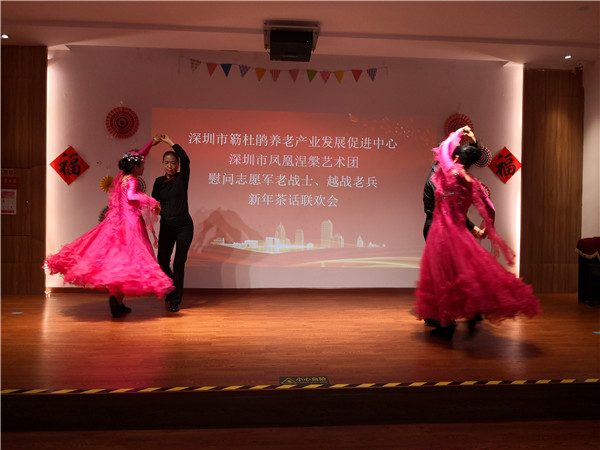 紀念活動伊始,深圳市社會組織管理局副局長白凌在出差途中發(fā)來視頻祝賀。簕杜鵑養(yǎng)老產業(yè)促進中心上級領導張道新也一直關注和支持活動的進展?;顒蝇F場,簕杜鵑養(yǎng)老產業(yè)促進發(fā)展中心黨支部書記于軍發(fā)表了熱情的簡短的講話。他首先對前來參加和指導活動的老首長、老前輩和各位嘉賓表示衷心的感謝。隨后,他簡短地介紹了簕杜鵑養(yǎng)老中心的發(fā)展情況。他說,該養(yǎng)老中心是按照習總書記“推動養(yǎng)老事業(yè)多元化、多樣化發(fā)展”的指示下成立的,得到社會管理局的支持和指導,將會在深港兩地開展養(yǎng)老信息咨詢、養(yǎng)老機構服務等。目前,成立了簕杜鵑養(yǎng)老產業(yè)發(fā)展中心黨支部、簕杜鵑養(yǎng)老產業(yè)藝術團,并將爭做黨建、文化建設的“雙排頭兵”作為該社團的目標之一。今年,已開展獻愛心走訪慰問,重陽節(jié)為羅湖區(qū)鶴年居家養(yǎng)老中心的老人送去4臺多功能輪椅、100支手杖、14400個口罩等實用物品;協(xié)調部分社康中心、醫(yī)院和相關基金會共同舉辦大型的老年人義診活動;同時與市內多家大健康企業(yè)進行溝通,建立長期聯(lián)合互助渠道,籌建示范養(yǎng)老基地,探索深圳特色的養(yǎng)老模式,打造養(yǎng)服務品牌,造福深港兩地老人群體。