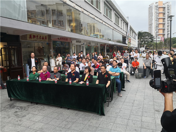 開(kāi)幕儀式上,珍風(fēng)閣藝術(shù)館總經(jīng)理夏雨致辭,感謝一從嘉賓和書(shū)畫(huà)愛(ài)好者們的捧場(chǎng)。隨后,深圳市美術(shù)家協(xié)會(huì)名譽(yù)主席、深圳美術(shù)館原館長(zhǎng)宋玉明先生致辭。他說(shuō),他來(lái)大芬村多次,一直關(guān)注大芬油畫(huà)村的發(fā)展和壯大,認(rèn)為大芬村為全國(guó)書(shū)畫(huà)走向市場(chǎng)開(kāi)了先例。個(gè)人在此舉辦畫(huà)展是首次,感覺(jué)很有意義,是一次走向市場(chǎng)的實(shí)踐機(jī)會(huì),值得珍惜和學(xué)習(xí),也歡迎大家批評(píng)指正。在現(xiàn)場(chǎng),宋玉明老師還回答了主持人的提問(wèn)。他謙虛地說(shuō),這次和陳湘波主席的聯(lián)展,有陳主席的花鳥(niǎo)和自己的城市山水,可以雅俗共賞。陳湘波老師因參加“兩會(huì)”未能出席開(kāi)幕儀式,但在會(huì)后及時(shí)趕到現(xiàn)場(chǎng),表達(dá)自己對(duì)來(lái)賓的感謝和自己對(duì)本次畫(huà)展組織的重視和支持。