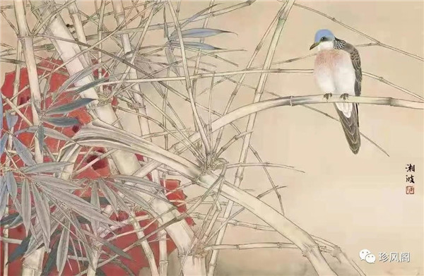 陳湘波的工筆花鳥(niǎo)已是爐火純青,不少作品透現(xiàn)著一種難得的典雅和清麗。每讀一張,都令人耳目一新,留連不已!畫(huà)面上的一枝一葉,一羽一尾,無(wú)論在筆墨,設(shè)色和造型上,都能看出畫(huà)家功力的深厚和技法的精到。