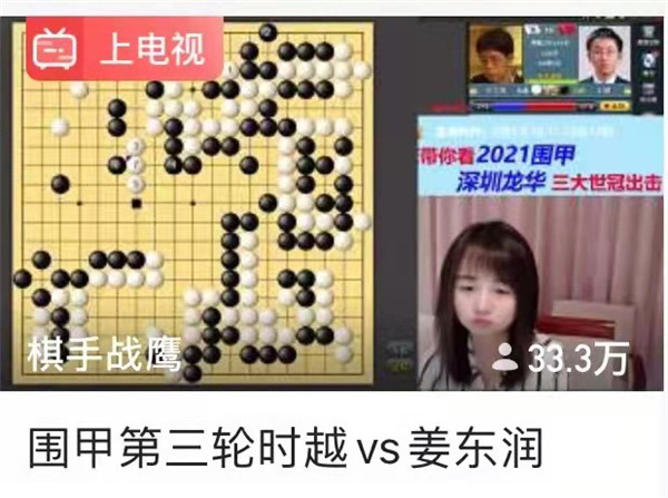 今日虎牙直播對(duì)深圳龍華隊(duì)的現(xiàn)場(chǎng)講解點(diǎn)評(píng)沖上了33.3萬(wàn)人次的大關(guān),人氣可謂一路上升!職業(yè)女棋手戰(zhàn)鷹解說生動(dòng)有趣,棋迷們聽得也過癮。再有“龍哥”“申一冠”的迷粉,直播室熱鬧非凡!戰(zhàn)鷹是圍棋知名主播,作為深圳龍華隊(duì)網(wǎng)上直播合作人,為龍華隊(duì)的宣傳還真是帶來(lái)不小的效應(yīng)!明天繼續(xù)吧。