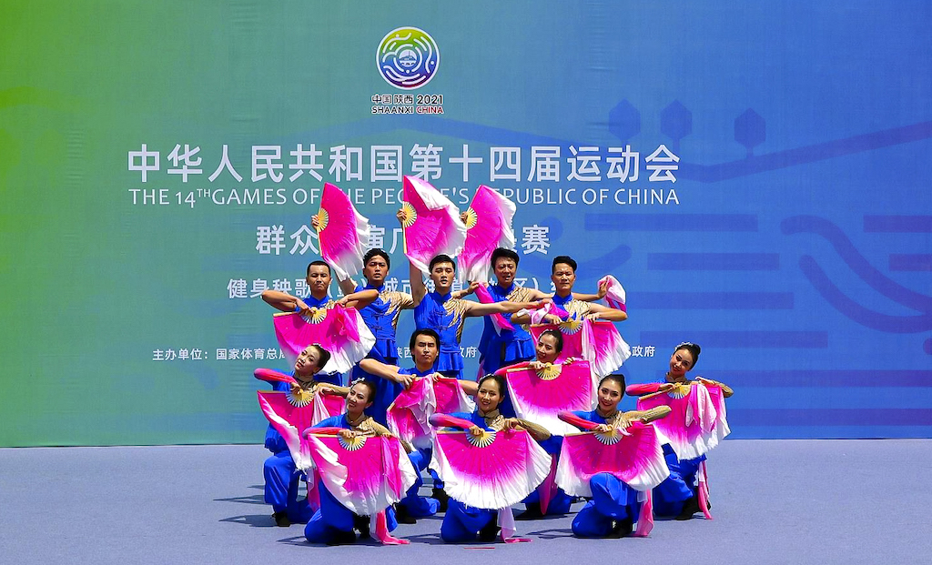本屆全運(yùn)會(huì)首次設(shè)置群眾展演項(xiàng)目廣場(chǎng)舞、廣播體操、健身氣功、太極拳4個(gè)大項(xiàng),共766支隊(duì)伍6800多人參賽。廣場(chǎng)舞設(shè)健身舞、健身秧歌(鼓)、廣場(chǎng)龍舞三個(gè)分項(xiàng),健身秧歌(鼓)分項(xiàng)線上展演及網(wǎng)絡(luò)投票于8月8日開(kāi)始,8月22日結(jié)束,8月25日進(jìn)行線下評(píng)審。