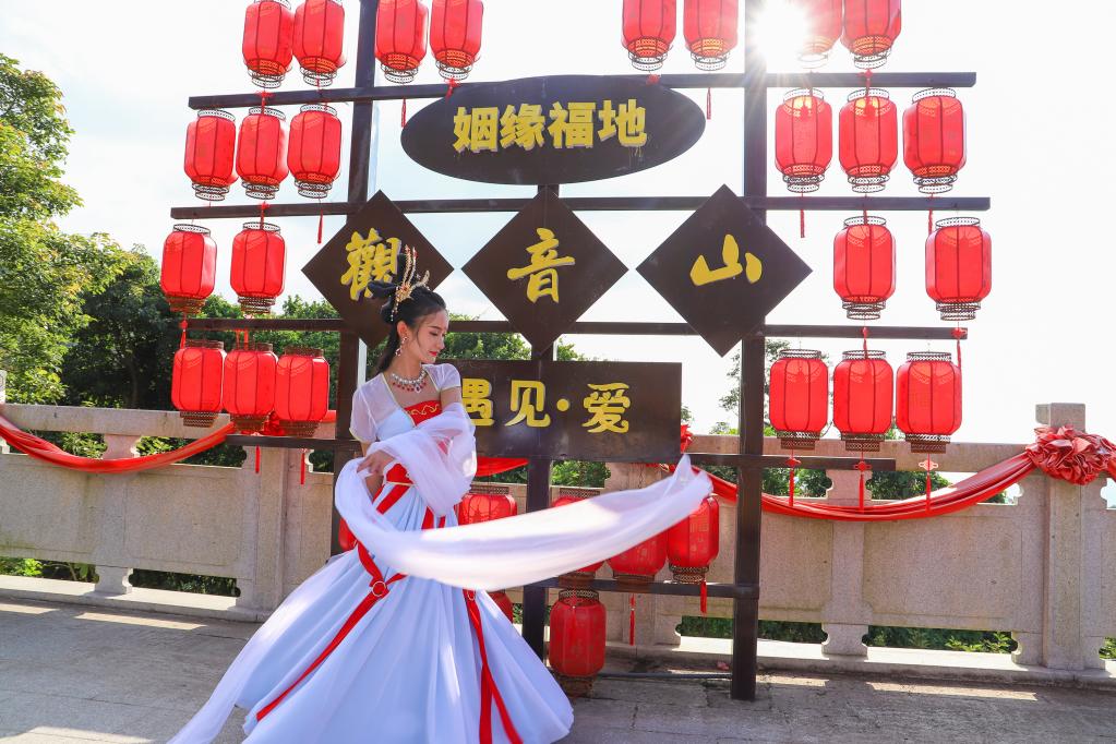 東莞觀音山依托自身深厚的傳統(tǒng)文化底蘊,逐步深挖景區(qū)內(nèi)的新、奇、趣的潮玩元素,推出了系列大眾喜聞樂見的潮玩體驗項目及景點,氣勢恢宏的仿清建筑城門樓、古色生香的吉祥苑、浪漫唯美的大紅花轎以及全新國潮墻系列景點……近年來,國潮打卡體驗逐步成為市民、網(wǎng)友追捧的新潮流,觀音山也因此備受青睞,成為大眾心中的網(wǎng)紅打卡地。