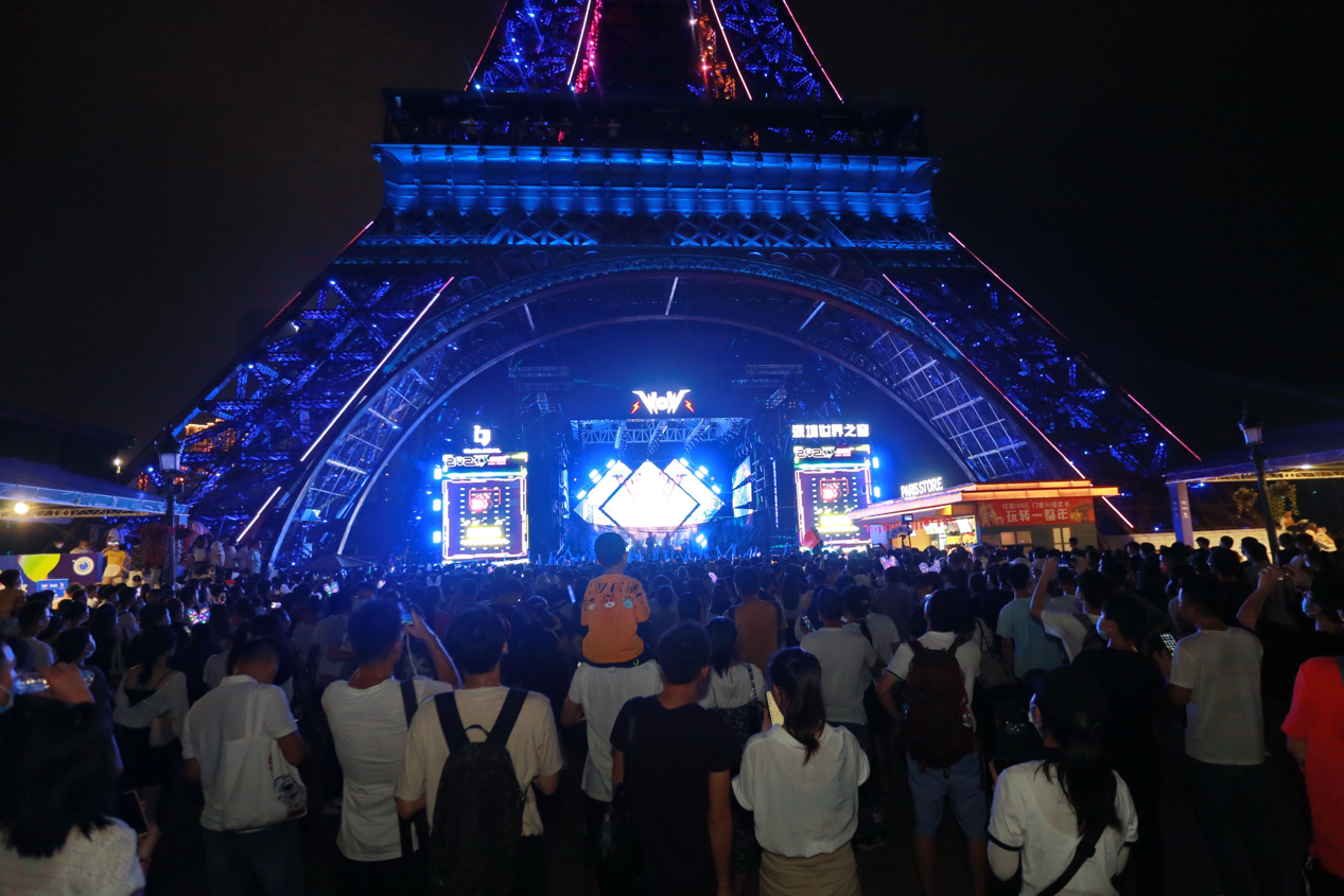 17:00—22:00鐵塔下,今年國慶最重磅節(jié)目超豪華陣容“WOW潮音嘉年華”閃亮登場,本屆潮音嘉年華群星璀璨,新生代實(shí)力歌手趙磊、狂歡一路歌舞相隨,國內(nèi)dancerock先行軍“脆莓樂隊(duì)”一經(jīng)出場全場狂歡吶喊,粉絲們瘋狂打 call!直擊心靈的音樂,震撼的舞臺(tái)效果游客們紛紛表示“值回票價(jià)”。接下來的幾天重磅明星接連不斷: solo新星趙讓、霓虹花園、Hiphop少年組合BOY STORY、脆莓樂隊(duì)、LeeyOn李昂、對角巷樂隊(duì)、布偶樂隊(duì)、圳動(dòng)、黑玫瑰俱樂部、Spaceman太空人等演藝界先鋒人物將陸續(xù)登上舞臺(tái)傾情獻(xiàn)演,用充滿活力的青春姿態(tài)向未來致敬,現(xiàn)場游客沉浸其中,隨著歌手與音樂不斷嗨!環(huán)球舞臺(tái)同時(shí)上演大型音樂舞蹈史詩《盛世紀(jì)》;冰場廣場開啟魔幻光影秀《奇幻歐洲》。