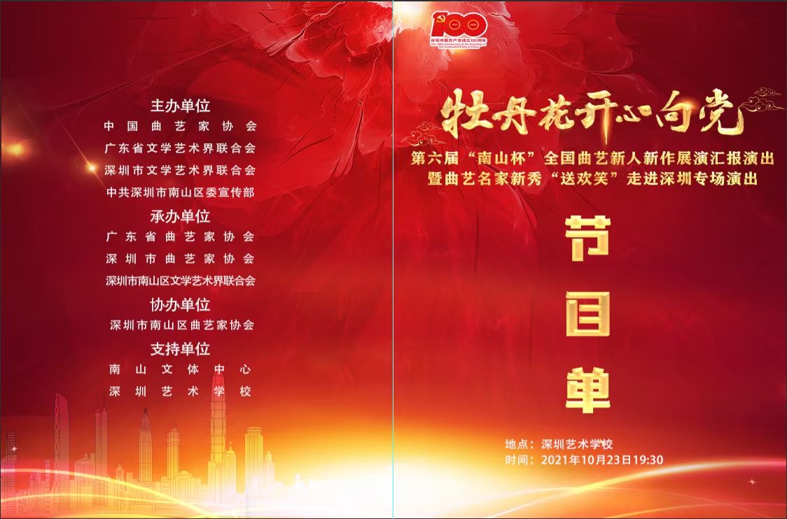 據(jù)悉,本次活動(dòng)由中國曲藝家協(xié)會、廣東省文學(xué)藝術(shù)界聯(lián)合會、深圳市文學(xué)藝術(shù)界聯(lián)合會、中共深圳市南山區(qū)委宣傳部共同主辦。廣東省曲藝家協(xié)會、深圳市曲藝家協(xié)會、南山區(qū)文學(xué)藝術(shù)界聯(lián)合會共同承辦。