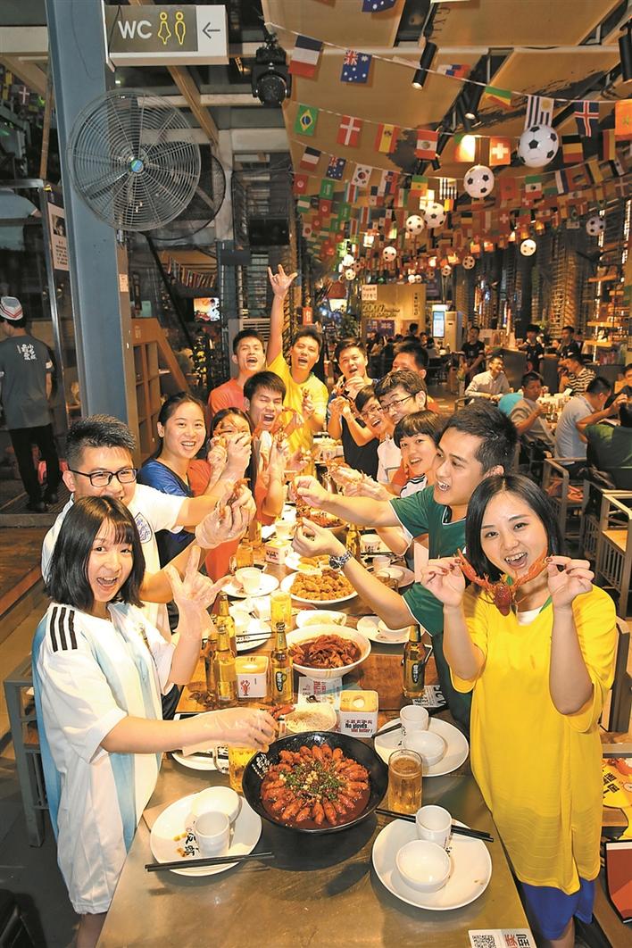 但這次世界杯期間,許女士找到了一個好去處:“看球其實不重要,重要的是大家聚在一起,但口味一定要找大家都能接受的,所以挑來挑去最后選擇了龍巢?!痹谧蛲淼凝埑驳陜?nèi),一整盤的蛋黃味小龍蝦被許女士吃個精光:“這是吃得最暢快的一次,整個氛圍也很到位,接下來的比賽就扎根在這里了?!?/p>