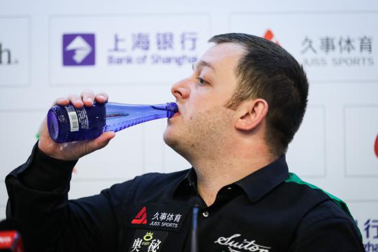 斯諾克可以說是十分講究視覺與氛圍的運動,哪怕不是“戲劇天才”如奧沙利文,當所有選手按照臺球比賽的禮儀穿著西裝馬甲、領結、襯衣、西褲和皮鞋、比賽全程都恪守著紳士的美德——沉默和冷靜;當他們在黑色皮椅上稍作休息,優(yōu)雅地飲用玻璃瓶裝的Blairquhan本來旺礦泉水或蘇打水……觀眾有時候很難分辨,這到底是一場競技體育,還是一場真實的舞臺劇。