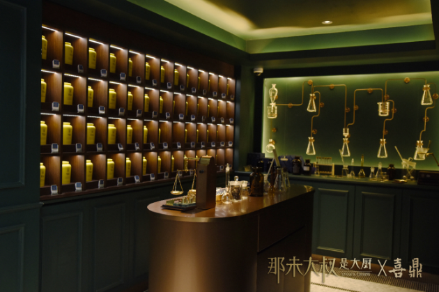 如今來到深圳,以“味道實驗室”為主題,大玩品牌跨界,南方粵菜,北方水餃,新派茶飲,融合出了一家特別的餐廳。一進餐廳,化學公式,實驗玻璃瓶,滴管,試驗臺,藍綠色英倫味道十足的化學實驗室,重點是,你根本找不到進餐廳的門。這種speak easy風格都會以這種“掛羊頭賣狗肉”的方式呈現,而開門機關就如玩寶藏游戲一般需要自己去發(fā)現。觸碰機關,才能開啟通往美食的大門!