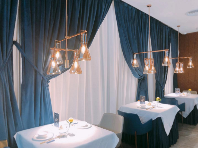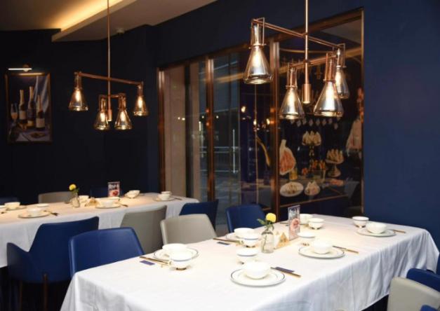 密室的大門,區(qū)隔開的完全是兩種不同的風格。實驗室風格VS LOFT風,密室玩的是神秘的科學實驗室氛圍,大堂則是完全敞亮通透的空間,整體以大叔紳士藍、玫瑰金為主色調,線條利落的天花板吊頂,吊燈暖暖的光線投射在擺放講究的餐具上,浪漫又小資,再搭配大理石紋水泥地磚、木紋墻藝等,讓整個空間保持和諧統(tǒng)一的氛圍,又展現出豐富的層次感。廚房直接采用明檔的空間設計,衛(wèi)生情況一目了然,除了大堂,還設有特色VIP室和半透明宴會廳,適合有重要會談和生日宴會需求的朋友。