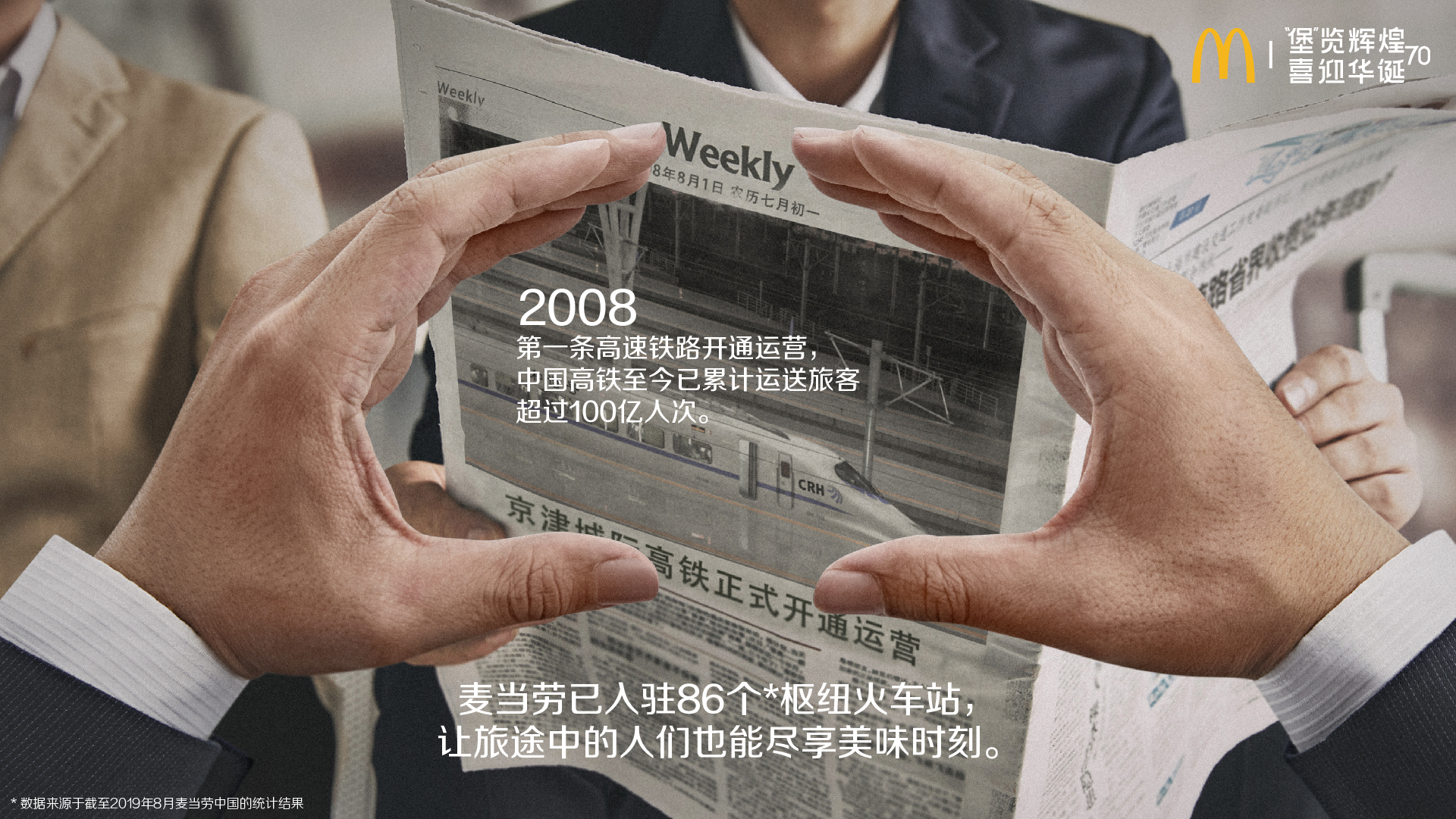 便捷出行,美味隨心:2008年,中國第一條高速鐵路——京津城際鐵路正式開通。高鐵不僅改變了人們的出行方式,更推動(dòng)了區(qū)域經(jīng)濟(jì)發(fā)展。麥當(dāng)勞已入駐86個(gè)樞紐火車站,為旅客提供便捷美味。