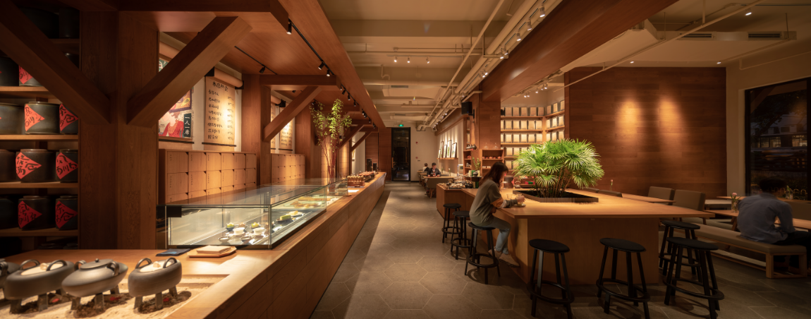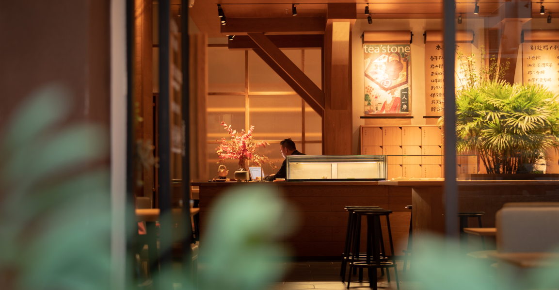 “一個(gè)溫暖的會(huì)客廳”是tea’stone對(duì)所構(gòu)建的茶空間的定義,也是他們對(duì)其所提倡的茶美學(xué)生活的表達(dá)之一。tea’stone團(tuán)隊(duì)有著深厚的空間美學(xué)造詣,在傳統(tǒng)的基礎(chǔ)上做減法,沉浸式的開(kāi)放空間,選取東方美學(xué)的核心因素,以傳統(tǒng)梁柱,斗拱和椽檁,勾勒出當(dāng)代簡(jiǎn)約的茶空間,呈現(xiàn)出精制溫暖的格調(diào),家私、櫥窗、花藝凡見(jiàn)種種,皆散發(fā)著和諧雅致的美感。簡(jiǎn)潔,現(xiàn)代,精致,溫暖,再結(jié)合“一人一席”的飲茶方式,讓喝茶這件事完整靈動(dòng),并且稱得上具有美感的生活方式。難怪能看到越來(lái)越多的人們抱著筆記本坐在tea’stone里面獨(dú)處、辦公、會(huì)友?,F(xiàn)代中國(guó)人的“第三空間”從此又有了新的選擇。