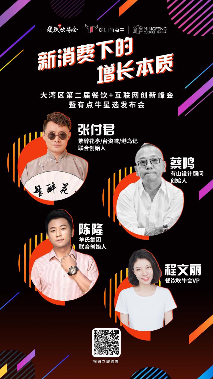 首先是餐飲吹牛會vp文咦帶領(lǐng)討論的“新消費(fèi)下的增長本質(zhì)”主題,在這議題中分別由有山設(shè)計顧問創(chuàng)始人/設(shè)計總監(jiān)蔡鳴、羊氏集團(tuán)聯(lián)合創(chuàng)始人/總經(jīng)理陳隆、繁醉花亭/臺資味/港島記聯(lián)合創(chuàng)始人張付君三位嘉賓出席討論,圍繞今年餐飲幾大熱門關(guān)鍵詞展開精彩分享。