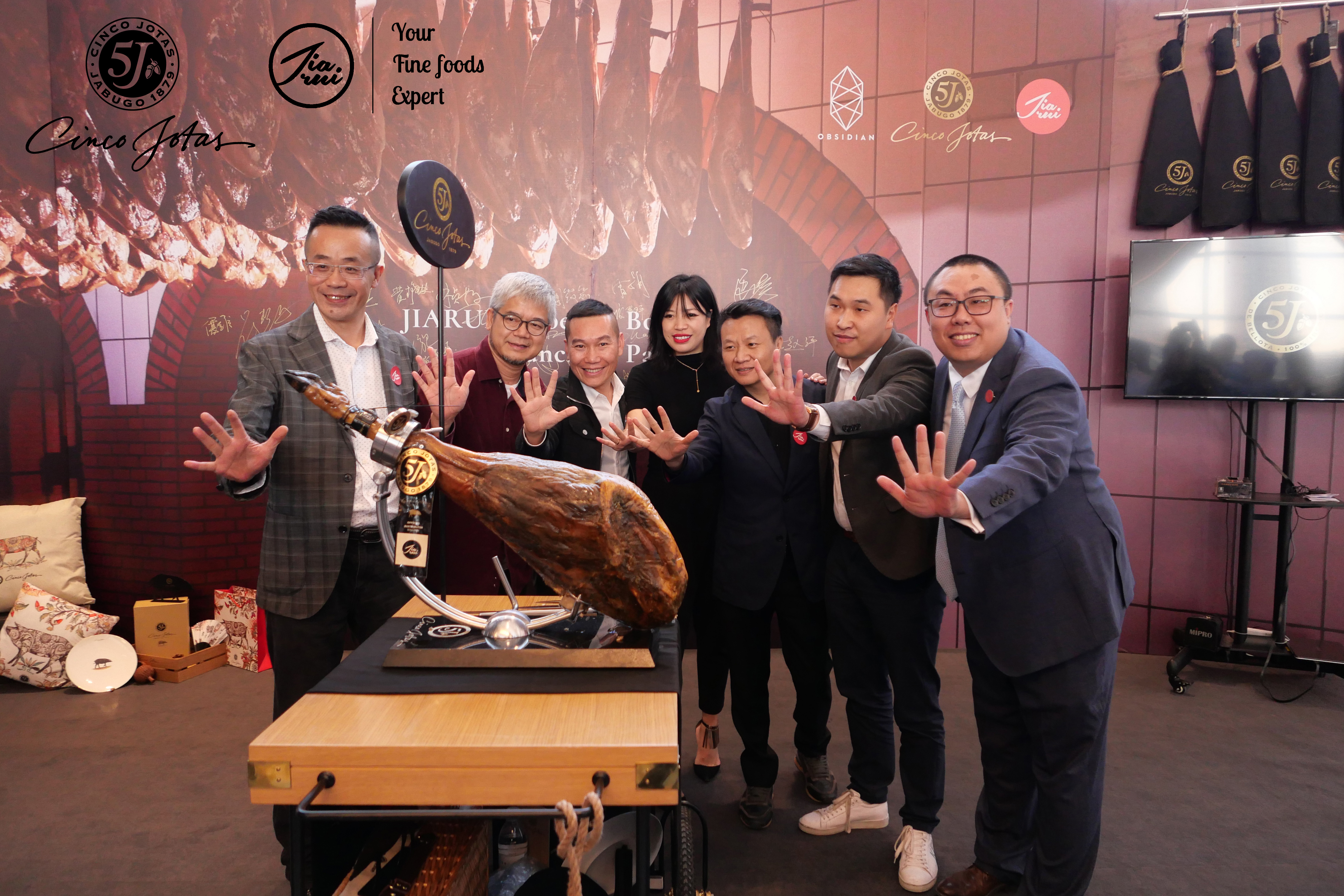 11月28日,深圳佳銳食品有限公司攜手OBSIDIAN BAR和5J品牌在深圳的地標(biāo)-平安金融中心舉行隆重的5j帶骨火腿開(kāi)關(guān)揭幕儀式;5J的大中華區(qū)銷(xiāo)售總監(jiān)-Selina、深圳佳銳總經(jīng)理-趙斌、OBSIDIAN BAR老板-程子瑞、深圳烹飪協(xié)會(huì)-劉永忠副會(huì)長(zhǎng)、蠔門(mén)九式創(chuàng)始人-陳漢宗和潮汕美食達(dá)人-林貞標(biāo)一起為南區(qū)第一條帶骨5j火腿做揭幕。