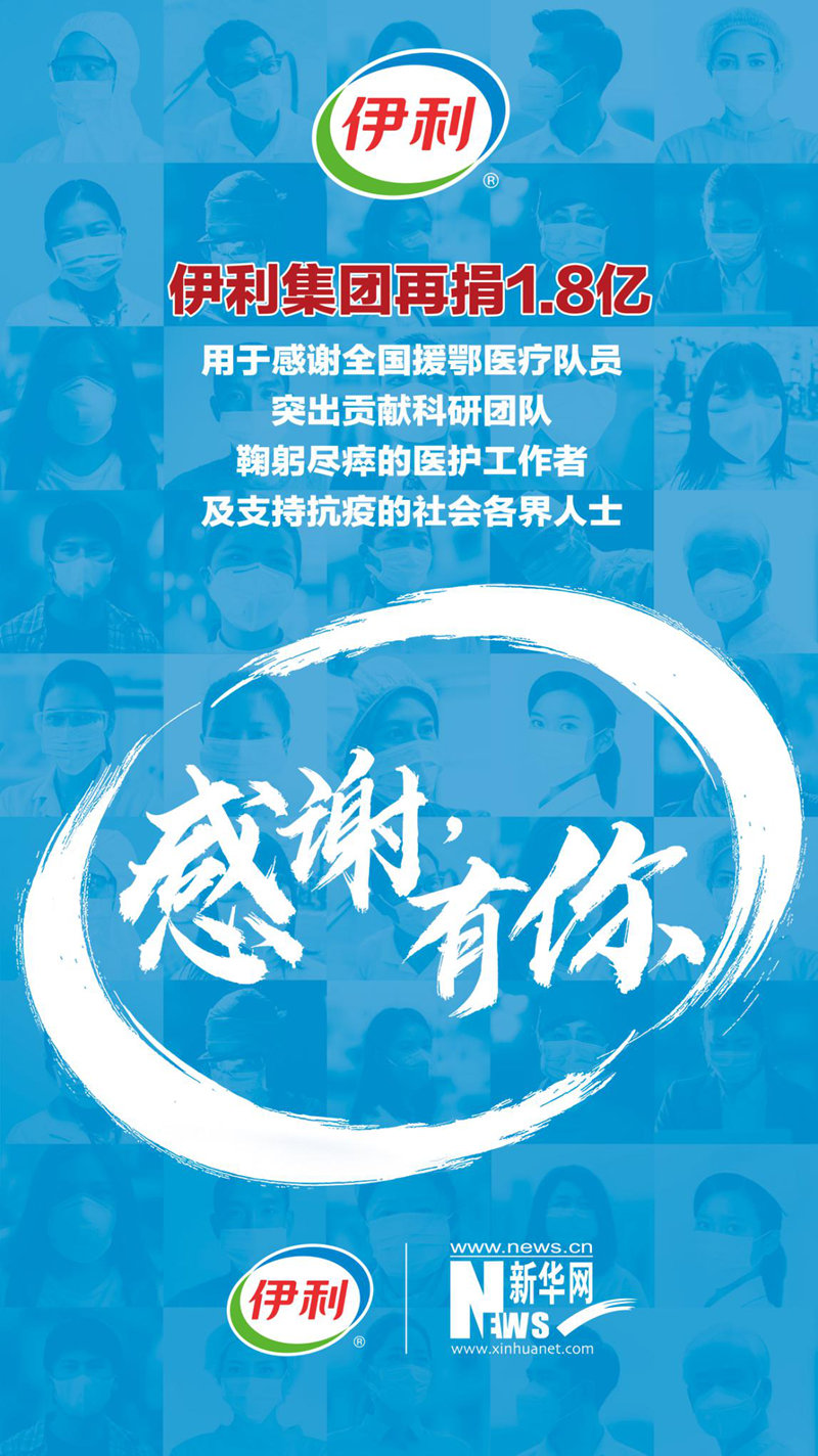新華網(wǎng)北京3月26日電(胡可璐) 在這場(chǎng)戰(zhàn)“疫”中,無(wú)數(shù)平凡英雄帶給我們最多感動(dòng),他們以“逆行者”的無(wú)畏和擔(dān)當(dāng)筑起疫情防控生命線,守護(hù)著人民,守護(hù)著國(guó)家。3月26日,伊利集團(tuán)再捐1.8億,第一時(shí)間購(gòu)買京東購(gòu)物卡,贈(zèng)送給全國(guó)所有援鄂醫(yī)療隊(duì)員,向他們提供全年?duì)I養(yǎng)支持;向鐘南山院士、李蘭娟院士、程京院士團(tuán)隊(duì)捐贈(zèng)1500萬(wàn)元,感謝科研工作者做出的突出貢獻(xiàn),共同推動(dòng)健康領(lǐng)域的科研攻關(guān);第一時(shí)間購(gòu)買京東購(gòu)物卡,贈(zèng)送給這次抗擊疫情中因公殉職醫(yī)護(hù)工作者的家屬,為他們提供連續(xù)十年的營(yíng)養(yǎng)支持;同時(shí)也向奮戰(zhàn)在抗疫一線的社會(huì)各界人士提供營(yíng)養(yǎng)保障。責(zé)任無(wú)界,大愛(ài)無(wú)疆,伊利累計(jì)捐贈(zèng)額度將達(dá)2.8億,共迎抗疫勝利。