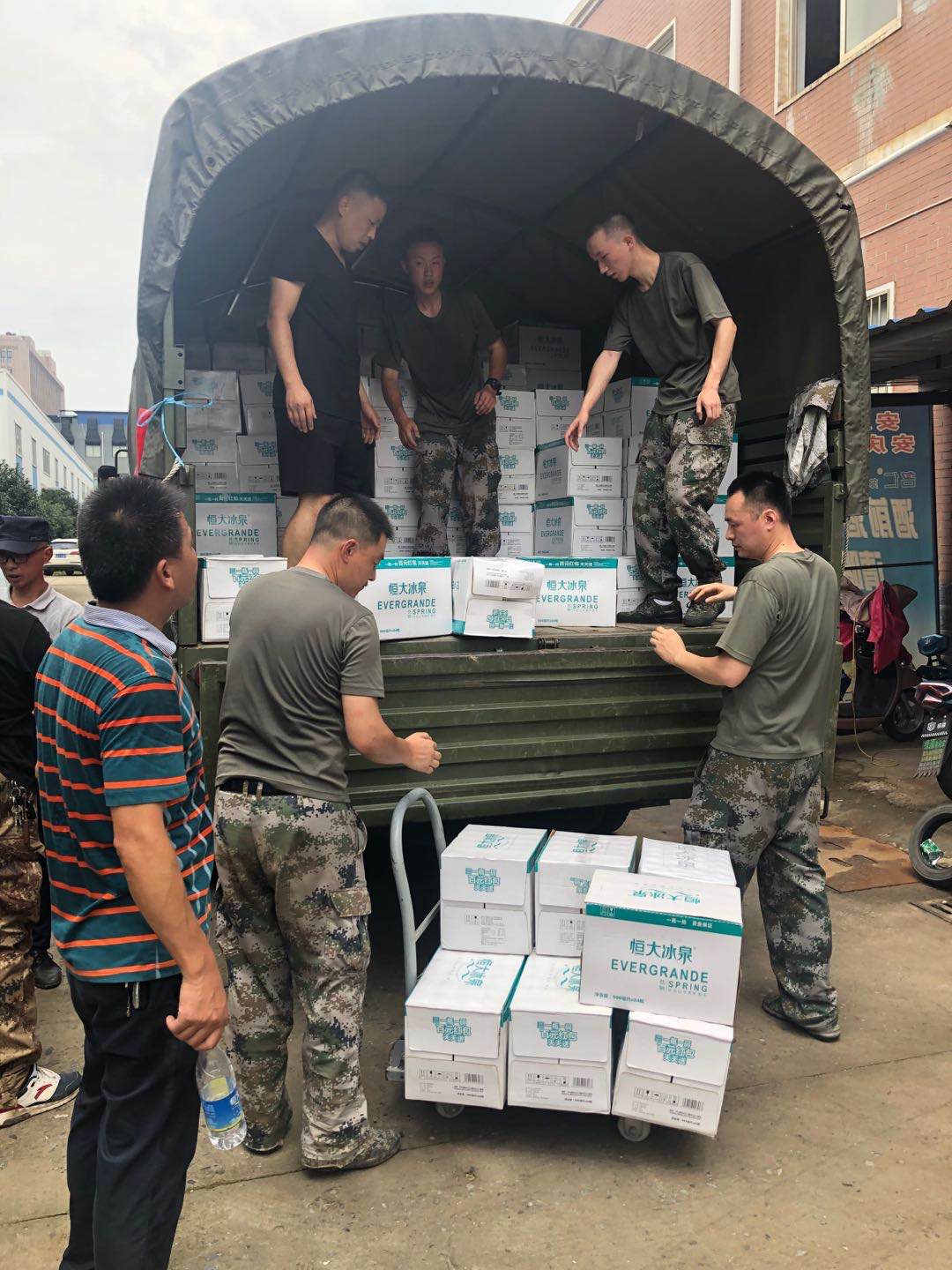 恒大冰泉安徽?qǐng)F(tuán)隊(duì)搬運(yùn)捐贈(zèng)物資