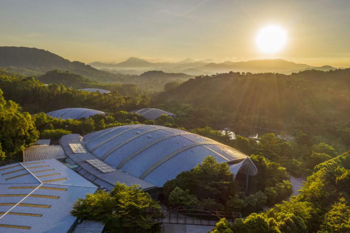 百歲山生產(chǎn)基地坐落在羅浮山脈腳下,整個工廠與周圍的自然生態(tài)融為一體。進(jìn)入廠區(qū)后,整潔開闊的道路、郁郁蔥蔥的樹木、頗具藝術(shù)感的銀龜型廠房,都讓人不敢相信這里是一個工廠,簡直就是旅游景區(qū),也太美了吧!