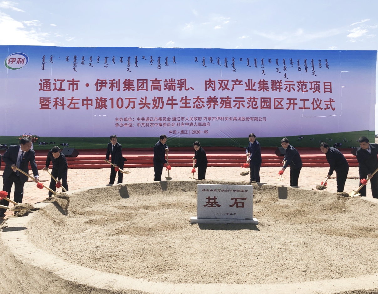 5月13日,“通遼市·伊利集團(tuán)高端乳、肉雙產(chǎn)業(yè)集群示范項(xiàng)目暨科左中旗10萬(wàn)頭奶牛生態(tài)養(yǎng)殖示范園區(qū)”正式開(kāi)工,雙方聯(lián)手打造全國(guó)唯一的奶牛和肉牛雙產(chǎn)業(yè)集群一體化現(xiàn)代農(nóng)業(yè)資源綜合開(kāi)發(fā)項(xiàng)目,建成后一座世界級(jí)的乳肉雙產(chǎn)業(yè)基地將在通遼市拔地而起。