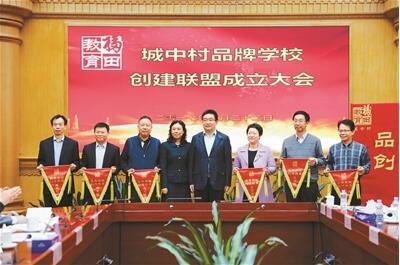 福田區(qū)領導為“城中村品牌學校聯(lián)盟”成員校授旗。