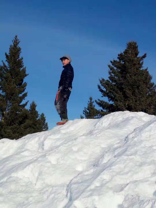 在學(xué)校,一望無際的操場上,雪丘一個比一個高,當(dāng)你站在雪丘的至高點(diǎn),笨重的校巴就不再是那么大了。喜歡雪的同學(xué)們一點(diǎn)也不怕冷。他們在雪地里打球、摔跤、滑雪,還不時地會聽到尖叫聲,原來是同學(xué)相互在雪丘上推上推下,開心得不亦樂乎。