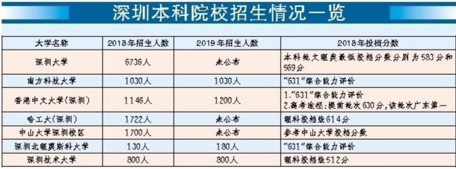 在目前已經(jīng)公布今年招生計(jì)劃的深圳高校中,深圳技術(shù)大學(xué)于2017年、2018年分別依托深圳大學(xué)招收226名及807名全日制本科生;2018年11月30日,深圳技術(shù)大學(xué)獲教育部發(fā)函正式成立,于2019年進(jìn)行首年獨(dú)立招生。記者從該校獲悉,深圳技術(shù)大學(xué)今年的招生數(shù)量與去年基本持平,計(jì)劃招收6個(gè)專業(yè)11個(gè)方向的800名新生。2019年,香港中文大學(xué)(深圳)預(yù)計(jì)在全國26個(gè)省市(自治區(qū))共招收本科生1200人,相比去年稍有增加。南科大也表示,今年計(jì)劃招收本科生1030人,與2018年的招生人數(shù)相差無幾。深圳北理莫斯科大學(xué)今年將啟用永久校區(qū),招生人數(shù)從去年的130人擴(kuò)大到了180人。
