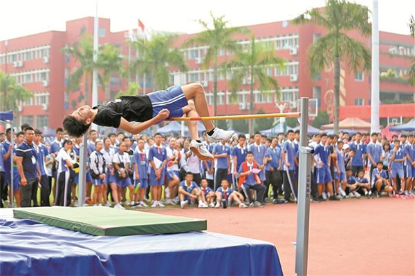 ▲沙井中學(xué)學(xué)生在第十四屆體育藝術(shù)節(jié)田徑運(yùn)動會跳高比賽中表現(xiàn)精彩。