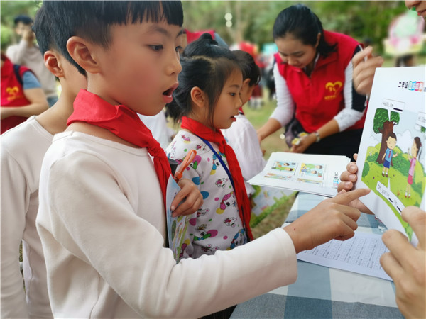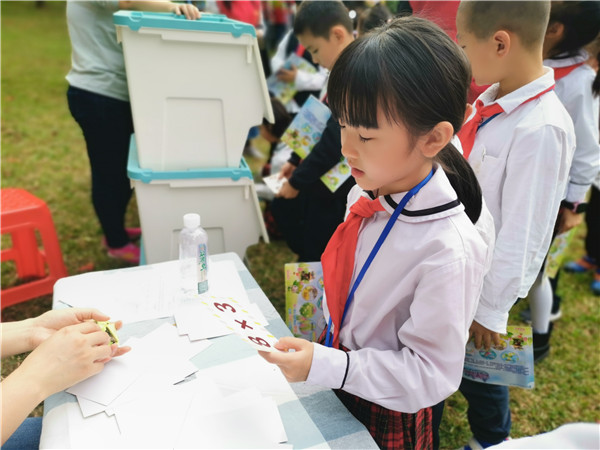 據(jù)悉,本次活動(dòng)以闖關(guān)的形式,每年級(jí)各分10個(gè)關(guān)卡,每闖一關(guān)就獲得一個(gè)能量動(dòng)物或者能量植物填補(bǔ)闖關(guān)卡的空白,各年級(jí)的學(xué)生需要在半小時(shí)內(nèi)將闖關(guān)卡的空白處填滿,才算闖關(guān)成功,獲得有校長(zhǎng)贈(zèng)言的書籍一本。關(guān)卡的設(shè)置以語(yǔ)文、數(shù)學(xué)和英語(yǔ)三個(gè)科別組成,其中,最受孩子們青睞的要數(shù)“筆架說(shuō)話”這個(gè)關(guān)卡,孩子們把自己相像成筆架山的一員,然后介紹自己,有同學(xué)說(shuō):“我是筆架山的大樹,我可以給大家遮蔭,讓大家不用被太陽(yáng)曬到?!薄ⅰ拔沂枪P架山的石頭,孩子們來(lái)筆架山玩的時(shí)候,可以把我們拼在一起做拼圖。”、“我想成為筆架山的暗綠繡眼鳥,就是嘴巴尖尖的,頭上綠綠的,眼睛邊上有點(diǎn)白色的那種,我要站在筆架山的枝頭上盡情歌唱,紅紅的火焰花為我做背景!”......孩子們通過(guò)豐富的相信力,盡情在老師與家長(zhǎng)義工面前展現(xiàn)臨場(chǎng)的表達(dá)能力。