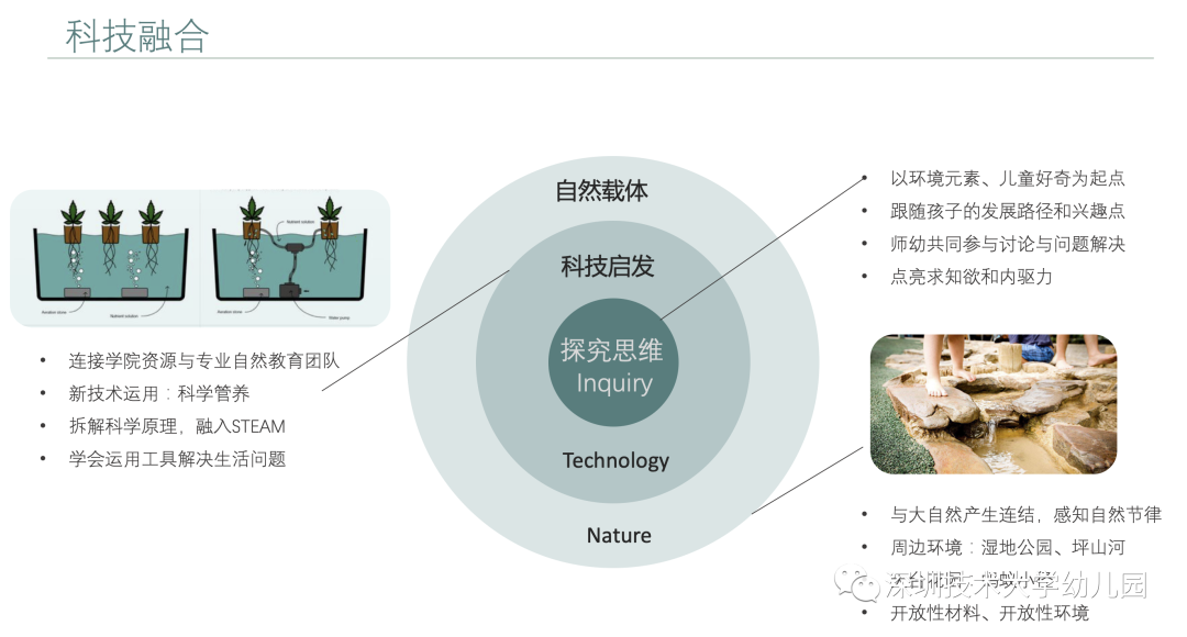 園舍內(nèi),聯(lián)動(dòng)大學(xué)學(xué)院資源和專業(yè)自然教育團(tuán)隊(duì)打造自然教育場所,使得科技與自然在幼兒環(huán)境中有機(jī)結(jié)合。自然在前,技術(shù)運(yùn)用在后,孩子將用探究的眼光發(fā)現(xiàn)如何運(yùn)用技術(shù)解決生活問題。