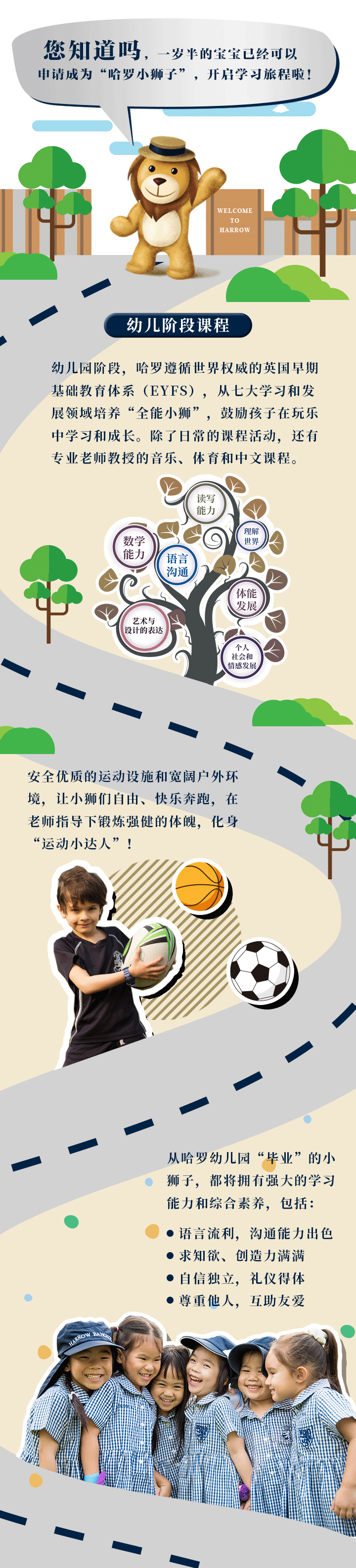 今天,我們就來用一張圖帶您讀懂,哈羅K-12課程內(nèi)容。了解孩子從哈羅的幼兒園到高中畢業(yè)班將從課內(nèi)課外學(xué)些什么、重點培養(yǎng)哪些出眾技能(K-12,即幼兒園至高中的教育)。為躋身著名大學(xué)做充足準備想了解更多?下拉至文末掃碼關(guān)注哈羅深圳前海官方微信,了解學(xué)校最新動態(tài)!