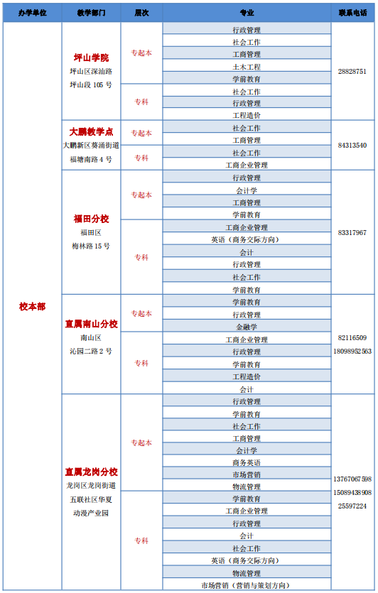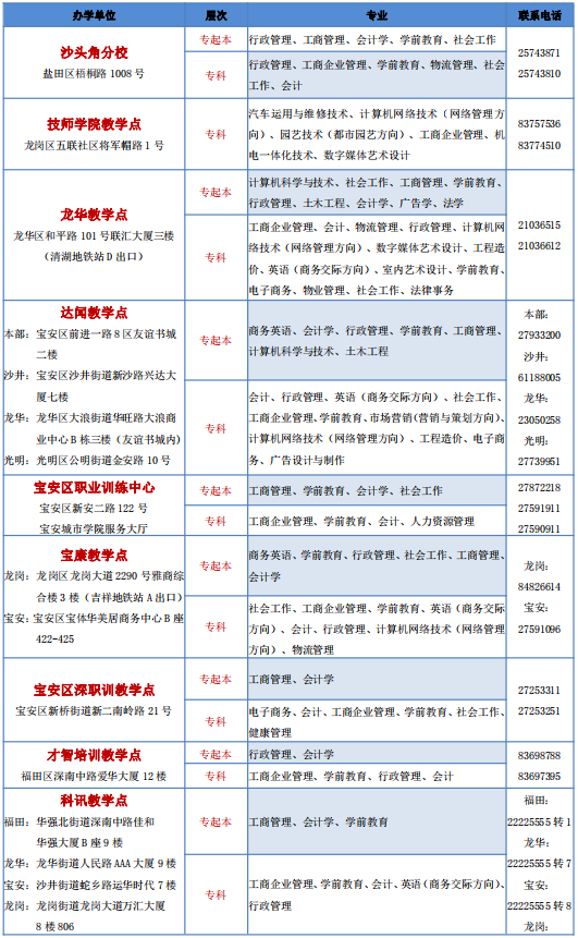 深圳開(kāi)放大學(xué)2021年春季招生教學(xué)點(diǎn)與專業(yè)公示
