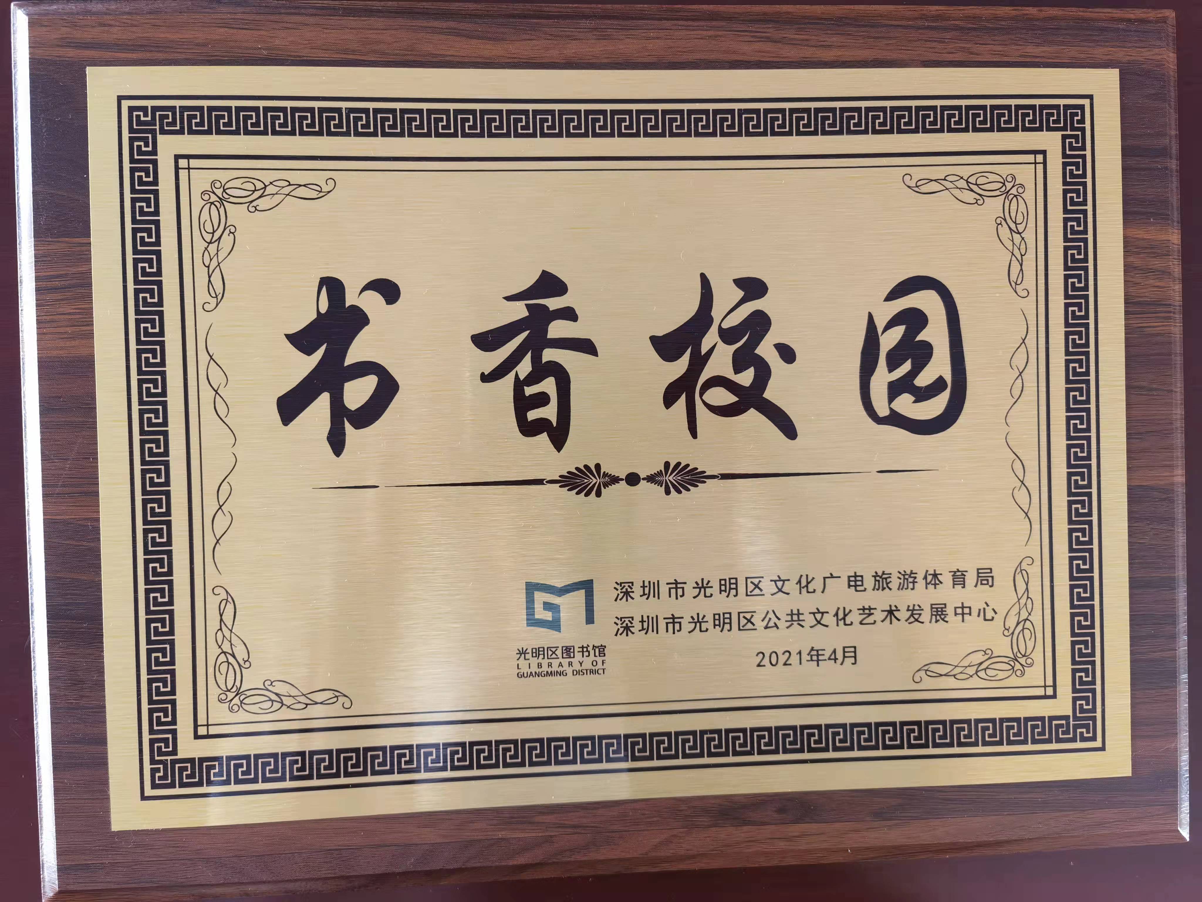 在2021年粵港澳“共讀半小時”光明區(qū)活動啟動儀式上,學校榮獲光明區(qū)“書香校園”的稱號。