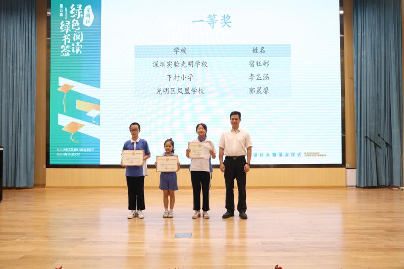 在光明區(qū)第五屆“綠色閱讀——綠書簽”設計大賽中,學校榮獲優(yōu)秀組織獎,郭晨曦同學獲一等獎,朱文睿、陳柳婉同學獲二等獎,陳欣妍同學獲優(yōu)秀獎。