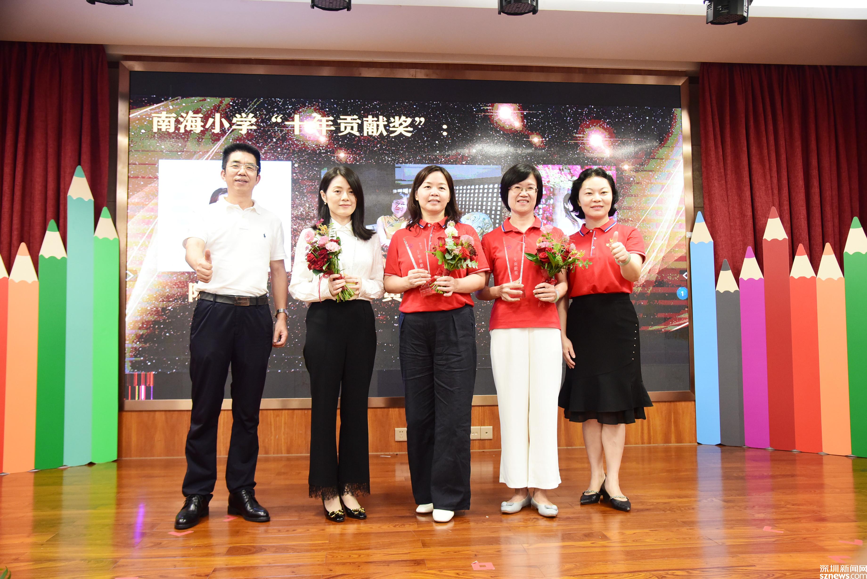 大會頒發(fā)了南海小學“十年貢獻獎”、南海小學特別貢獻獎、教學質(zhì)量獎,也對南山區(qū)優(yōu)秀教師、南山區(qū)優(yōu)秀班主任、入圍南山區(qū)2021“年度教師”決賽教師等進行了表彰。入圍南山區(qū)2021“年度教師”決賽的李艷老師、青年教師代表方子玉老師上臺分享了她們的教育教學經(jīng)驗與成長心路歷程,李艷老師說:“我不僅僅是一名英語教師,更是孩子們的夢想合伙人!”方子玉老師說:“南山就是一塊永遠充滿學習熱情的沃土,南海更是一所不斷為青年教師搭建學習平臺的寶藏學校?!?/p>