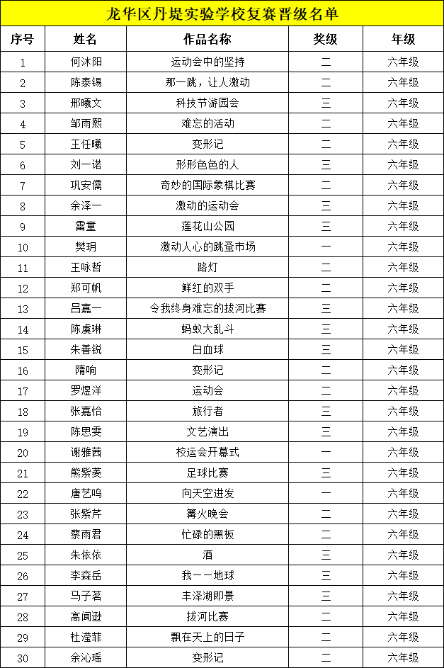 自2021年1月,活動征稿啟動以來,獲得了深圳市廣大中小學(xué)生、教師、文學(xué)愛好者的熱烈響應(yīng)積極參與,吸引了深圳百余所學(xué)校的上萬人關(guān)注報名?,F(xiàn)公布龍華區(qū)丹堤實驗學(xué)校晉級復(fù)賽名單如下: