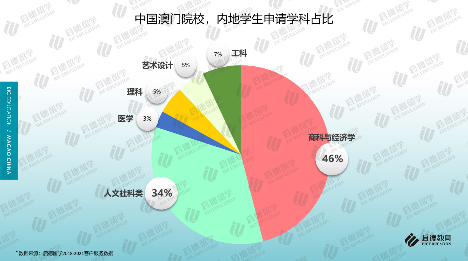 啟德留學(xué)2018-2021客戶服務(wù)數(shù)據(jù)顯示,商科與經(jīng)濟(jì)學(xué)(46%)、人文社科類(34%)、理工科(12%)在澳門高校的申請(qǐng)占比位居前三。在商科與經(jīng)濟(jì)學(xué)的細(xì)分專業(yè)中,工商管理、旅游與酒店管理、會(huì)計(jì)的申請(qǐng)占比超過(guò)6成;在人文社科類的細(xì)分專業(yè)中,傳媒、法學(xué)、語(yǔ)言學(xué)的申請(qǐng)占比超過(guò)6成;電子與計(jì)算機(jī)(55%)成為理工科選擇最多的專業(yè)。作為澳門求學(xué)的主要學(xué)科,澳門院校的商科碩士專業(yè)對(duì)GMAT/GRE考試不作硬性要求。