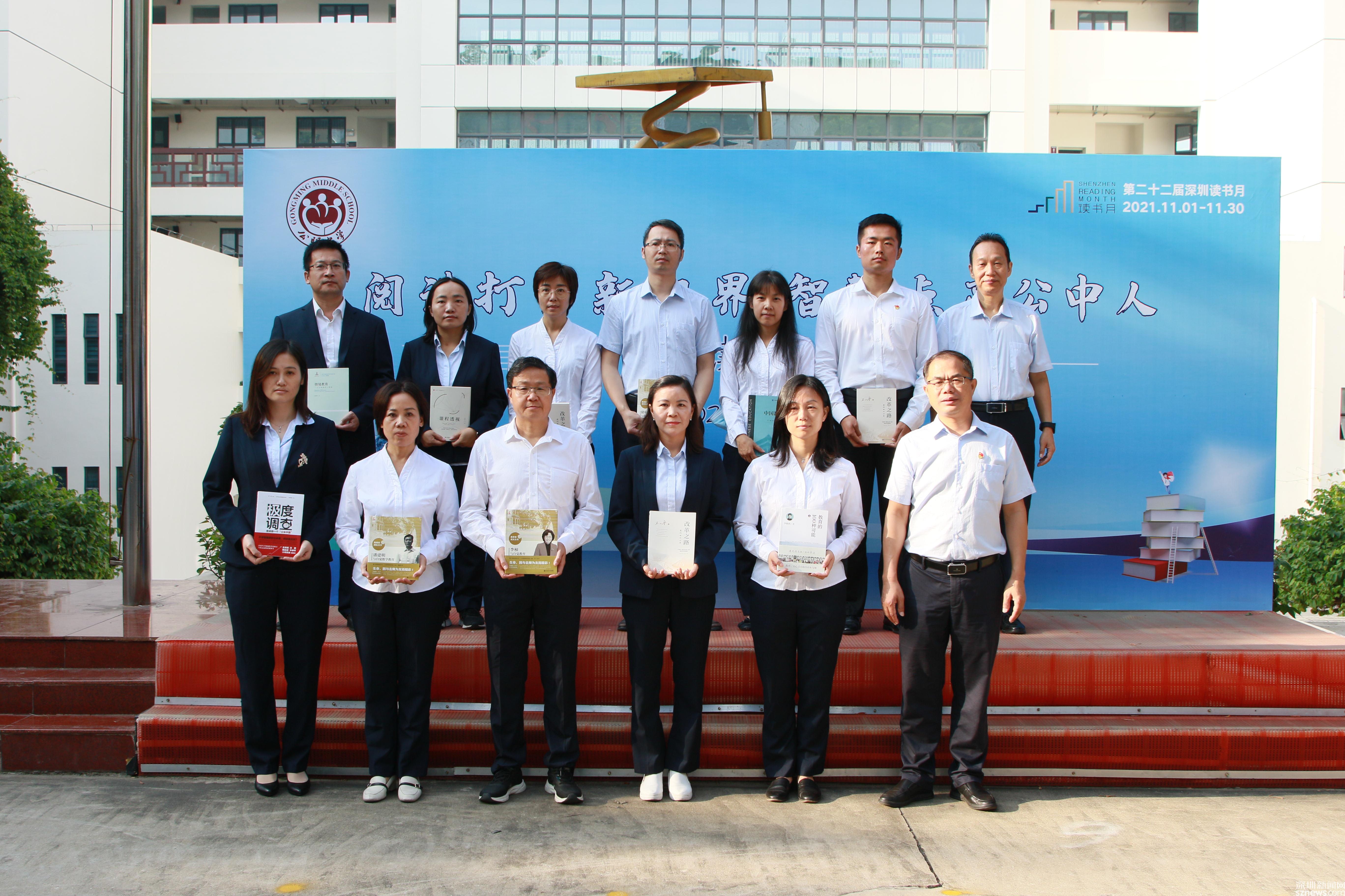 啟動(dòng)儀式上,初二(15)班全體學(xué)生帶來(lái)的朗誦《我愿意 奮斗終生》,催人覺(jué)醒;深圳市閱讀推廣人范世華攜公明中學(xué)各年級(jí)閱讀之星代表——初三(8)李詩(shī)晨、初二(8)宛錚、初一(2)班胡立麒,共同向全校師生發(fā)出讀書(shū)、愛(ài)書(shū)的倡議;華建明校長(zhǎng)、梁吉清副校長(zhǎng)向?qū)W校各學(xué)科科組長(zhǎng)贈(zèng)書(shū),希望科組長(zhǎng)帶動(dòng)備課組一起讀好書(shū),研究書(shū),用好書(shū),通過(guò)博而精的閱讀提升人文素養(yǎng),建設(shè)學(xué)習(xí)型教師共同體,進(jìn)而更好在學(xué)生心中種下讀書(shū)的種子。