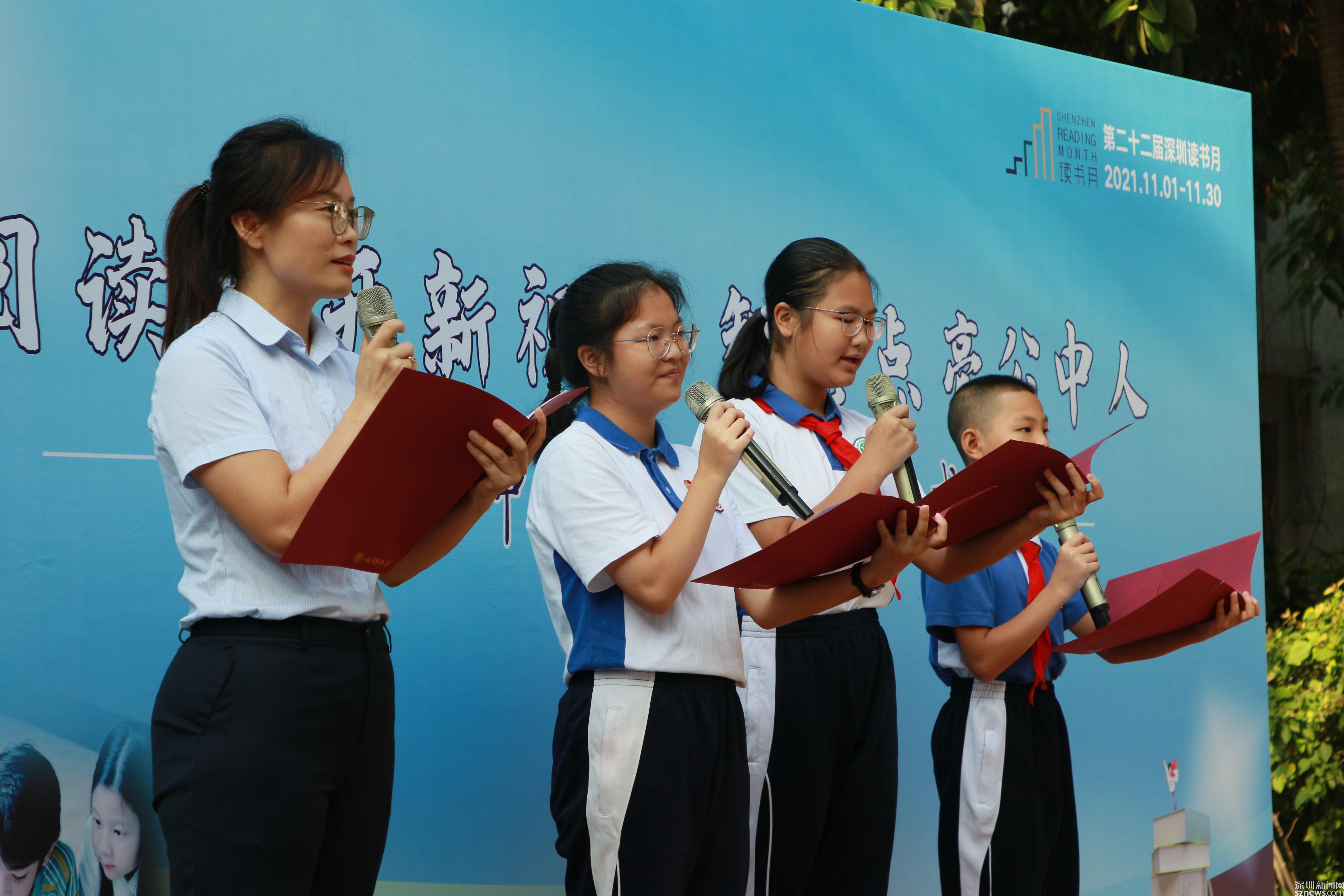 讀特客戶(hù)端·深圳新聞網(wǎng)2021年11月2日訊 (記者 曹園芳 通訊員 丘翹楚 劉小云 曾靜敏)為弘揚(yáng)“尊重知識(shí)崇尚文明”的閱讀理念,培養(yǎng)師生良好的閱讀習(xí)慣,營(yíng)造智雅的學(xué)習(xí)氛圍,塑造濃郁書(shū)香學(xué)習(xí)型校園,11月1日上午,深圳市光明區(qū)公明中學(xué)組織開(kāi)展了本年度讀書(shū)月啟動(dòng)儀式,全校師生參加了活動(dòng),活動(dòng)由初二(5)班譚欣怡同學(xué)主持。