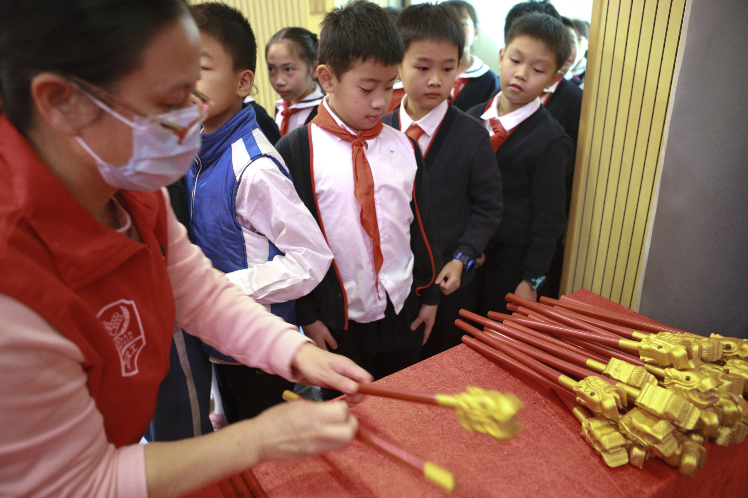 參加本次活動的學生們大感驚喜和意外,他們在入場的時候都從工作人員的手上領(lǐng)到一份特別可愛的佾舞“龠翟”的小道具。