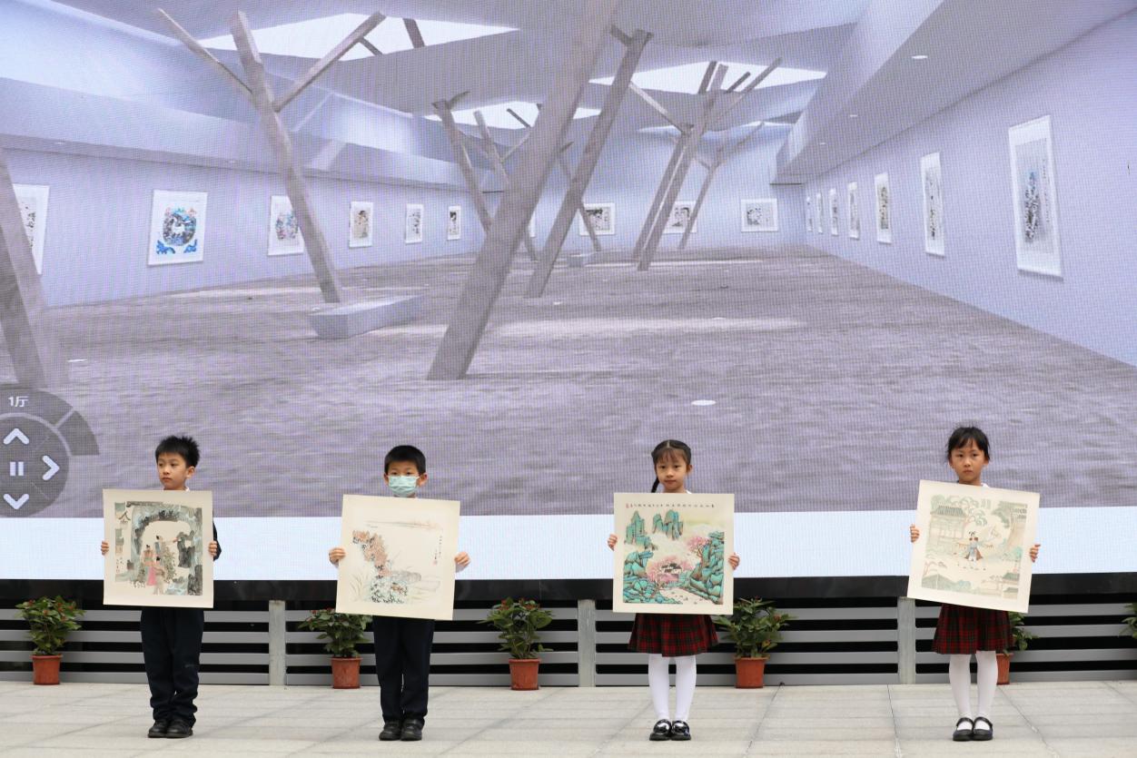 與開館和展覽同時(shí)推出的,還有“榕”美術(shù)館的云展館。云展館以新媒體形式,擴(kuò)大了展覽范圍,使得學(xué)校的美術(shù)美育成果得以向外部展示。推出之際,學(xué)校舉行了云展館的剪彩儀式。解署昱校長(zhǎng)致辭并宣布開館,福田區(qū)教科院藝術(shù)辦林影萍主任、解署昱校長(zhǎng)、劉權(quán)祥副校長(zhǎng)、姚紅霞副校長(zhǎng)為云美術(shù)館剪彩,并向全校學(xué)生贈(zèng)送了云展館資料。