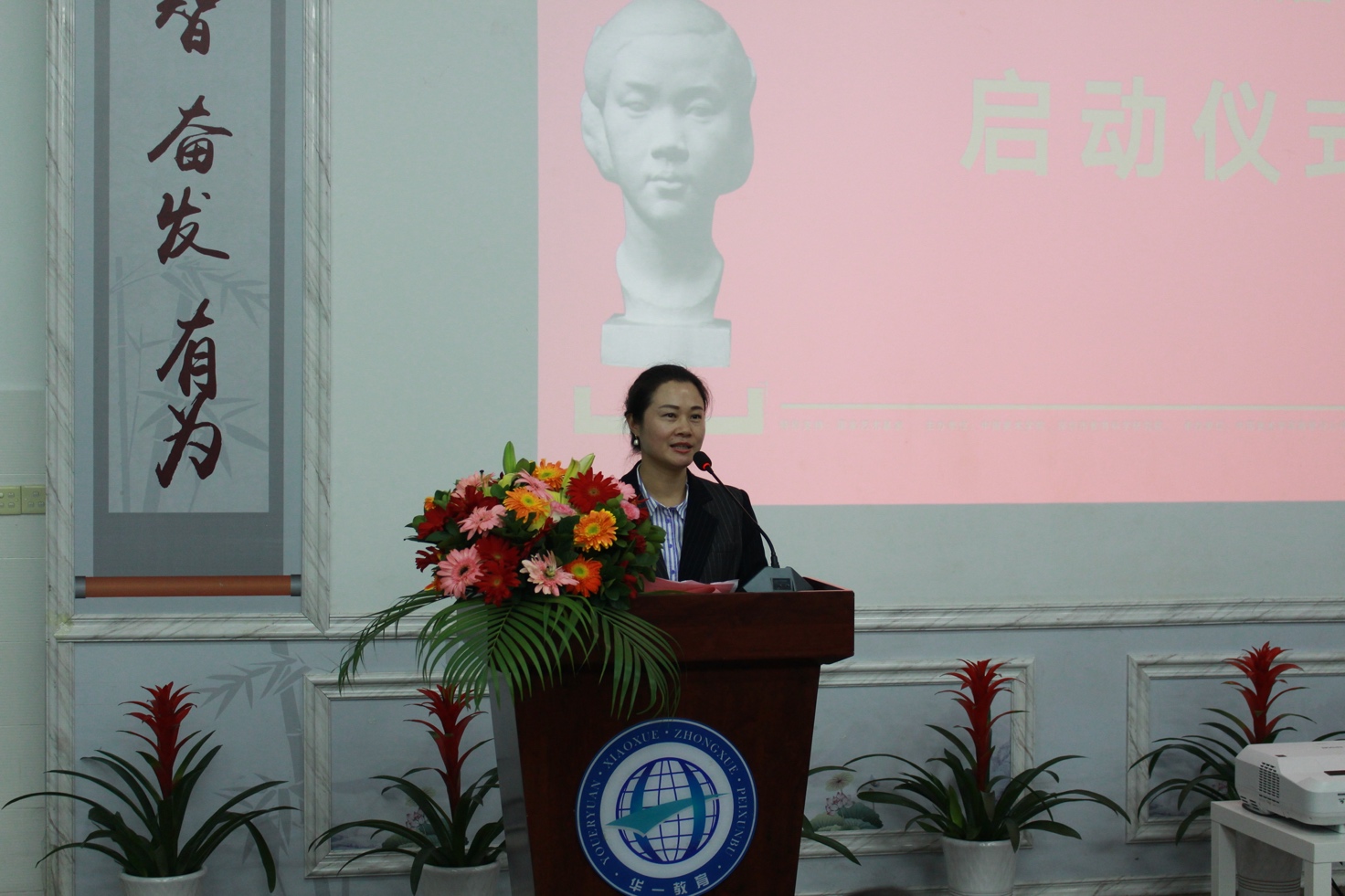 在此次開幕儀式上,中國美術(shù)學院雕塑與公共藝術(shù)學院副院長余晨星代表中國美術(shù)學院向華一實驗學校捐贈了一尊經(jīng)典中國人形象的教具作品——程曼叔先生的 《少女頭像 》。啟動儀式上,深圳市教育科學研究院院長李桂娟、深圳樹寶安區(qū)教育局副局長吳永明與潘曉蕾書記一起宣布“深圳市經(jīng)典作品進校園”活動正式啟動。李桂娟院長表示希望能與國美攜手,共同研究和推進大灣區(qū)基礎教育中的藝術(shù)教育,促進美育在深圳的發(fā)生與深入。