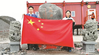 羅湖一名教師和兒子登上南極大陸,兩人在冰天雪地中穿著深圳校服自豪地秀國旗的照片驚艷了朋友圈。