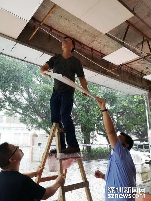 邊檢技術(shù)民警在搶修被強(qiáng)臺風(fēng)破壞的現(xiàn)場設(shè)施