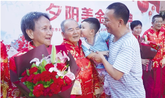 老人們雖然大多語言拘謹(jǐn),不少羞于表達(dá)愛意,但幾十年的風(fēng)雨同行,甘苦與共,相濡以沫,他們已用實(shí)際行動(dòng)踐行“執(zhí)子之手、與子偕老”的不變承諾。他們對(duì)婚姻的堅(jiān)守,彼此不離不棄,讓人為之動(dòng)容、深受感染,獲頒金婚證書。