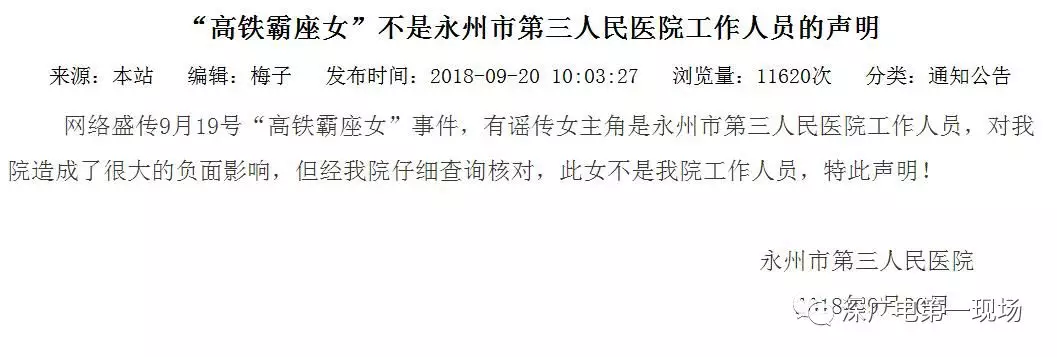 記者在永州市第三人民醫(yī)院官方網(wǎng)站看到,醫(yī)院已對此事發(fā)表了聲明通知,“謠傳女主角是永州市第三人民醫(yī)院工作人員,對我院造成了很大的負面影響,但經(jīng)我院仔細查詢核對,此女不是我院工作人員”。