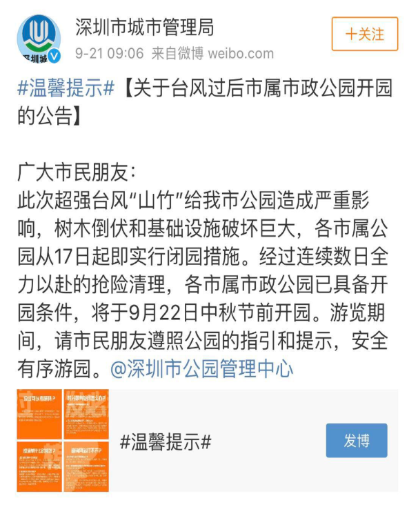 經(jīng)受過(guò)臺(tái)風(fēng)洗禮后的深圳市屬公園今天?。?!終于都開園啦!