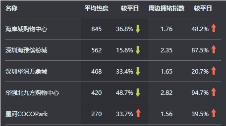 22日12時(shí)至今日12時(shí),全市各大型商圈周邊道路交通壓力較平日有所上升,擁堵高峰出現(xiàn)在22日16時(shí)至18時(shí),熱門大型商圈周邊道路較為擁堵的有:華強(qiáng)北九方購物中心、深圳海雅繽紛城和海岸城購物中心。