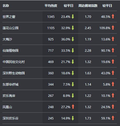 22日12時(shí)至今日12時(shí),我市熱門景區(qū)交通壓力較平日有明顯上升,擁堵高峰大部分出現(xiàn)在22日16時(shí)至17時(shí),熱門景區(qū)周邊道路較為擁堵的有:蓮花山公園、仙湖植物園及深圳歡樂谷。