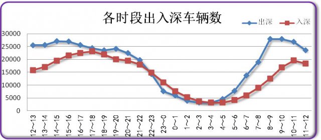 8-9時(shí)出深車輛最多