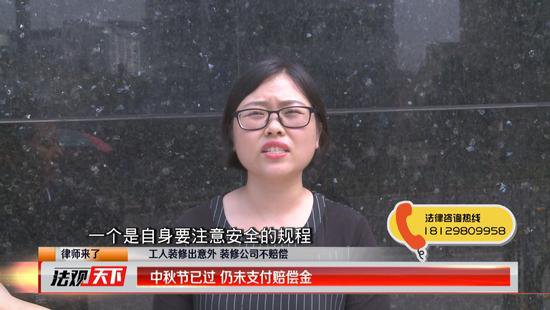 中秋節(jié)已經(jīng)過去3天了,截至記者發(fā)稿,蜂巢裝飾有限公司仍未支付給受傷工人朱先生第一筆賠償金。工友朱先生已經(jīng)很寒心,他說自己怎么都想不到蜂巢裝飾公司會(huì)這樣沒有誠(chéng)信,《法觀天下》嘉賓律師趙乙橋表示,根據(jù)《深圳市建筑施工行業(yè)參加工傷保險(xiǎn)的管理辦法》,她建議施工方能夠及時(shí)的給工人購(gòu)買意外保險(xiǎn),如遇類似的意外可以有效地分擔(dān)賠償。(記者鄭興)